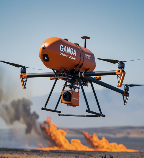 With a payload capacity of 20 liters, the Ganga can accurately drop fire-retardant chemicals to suppress fires effectively. Its long 60-minute flight time and 15 km operational range make it ideal for large-scale or remote firefighting missions.