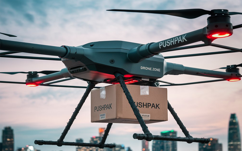 Pushpak is an advanced drone designed for large-scale logistics and delivery services. It is capable of vertical take-off and landing (VTOL) and is used for both commercial and emergency deliveries.