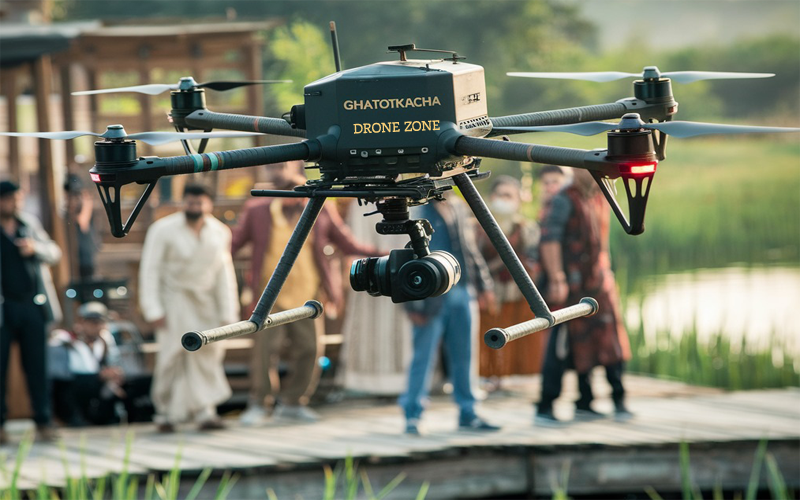 Ghatotkacha is a heavy-lift drone for serious film production. It’s designed for events requiring premium video equipment, like movie sets or high-budget live performances.